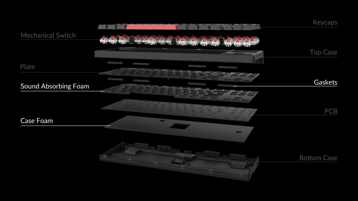 Το C3 Pro χρησιμοποιεί μια δομή στεγανοποίησης με φλάντζα για να μειώσει τον ακουστικό συντονισμό, προσθέτοντας παράλληλα μεγαλύτερη ευελιξία πληκτρολόγησης. Μαζί με τον ηχοαπορροφητικό αφρό και τον αφρό της θήκης, σας προσφέρει μια πιο ήσυχη και ομαλή εμπειρία πληκτρολόγησης.